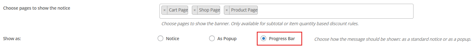Set the “Display From” amount – the cart subtotal at which the message or progress bar should appear.